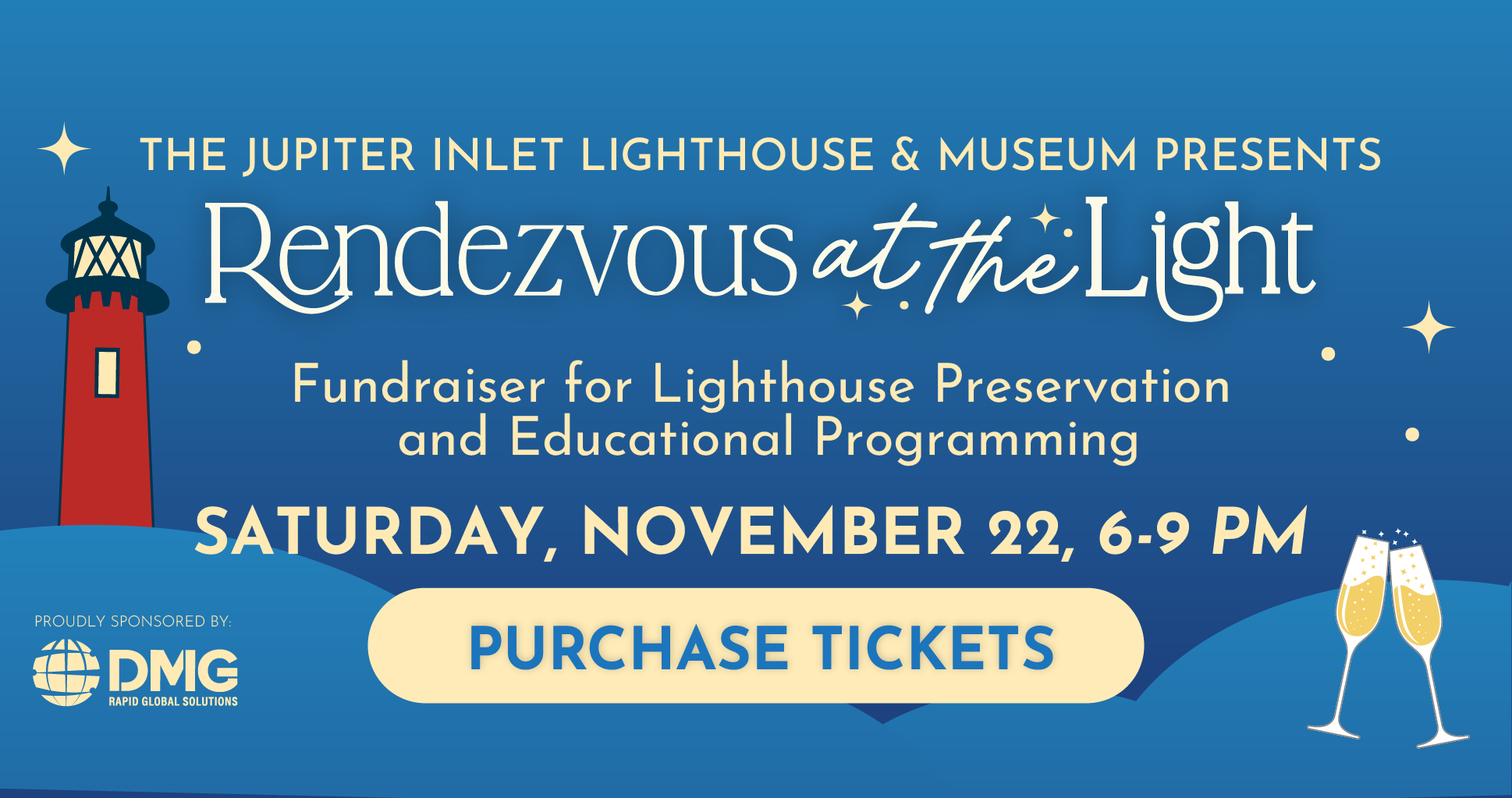 We’re thrilled to share that Rendezvous at the Light returns on Saturday, November 22, 2025, from 6:00–9:00 PM, set against the breathtaking waterfront of the Jupiter Inlet Lighthouse & Museum.